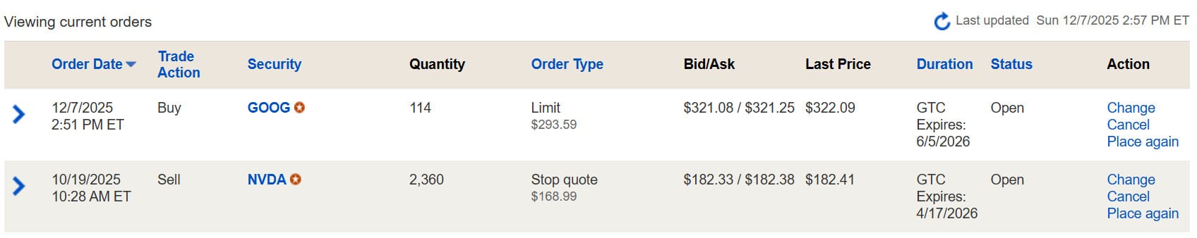 I had a little extra cash in a retirement account, about $33K, I placed another limit order to buy some more Google. Because the stock market can fluctuate, I've only decided to buy it only if it drops about 9% from where it's currently trading at. Otherwise, I might be placing another FOMO trade.