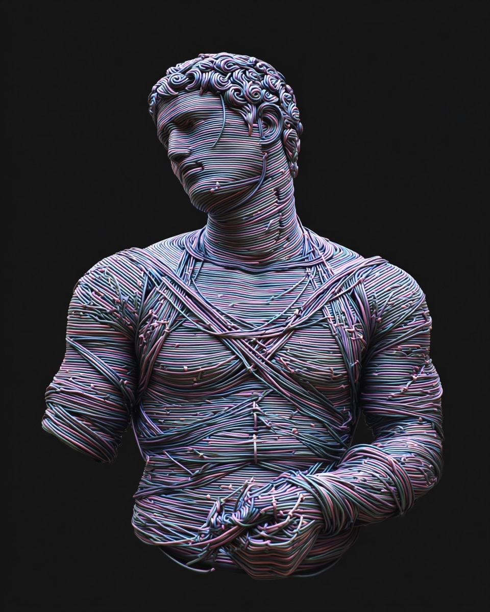 My first attempt was to use MidJourney and create a man wrapped in cable.
