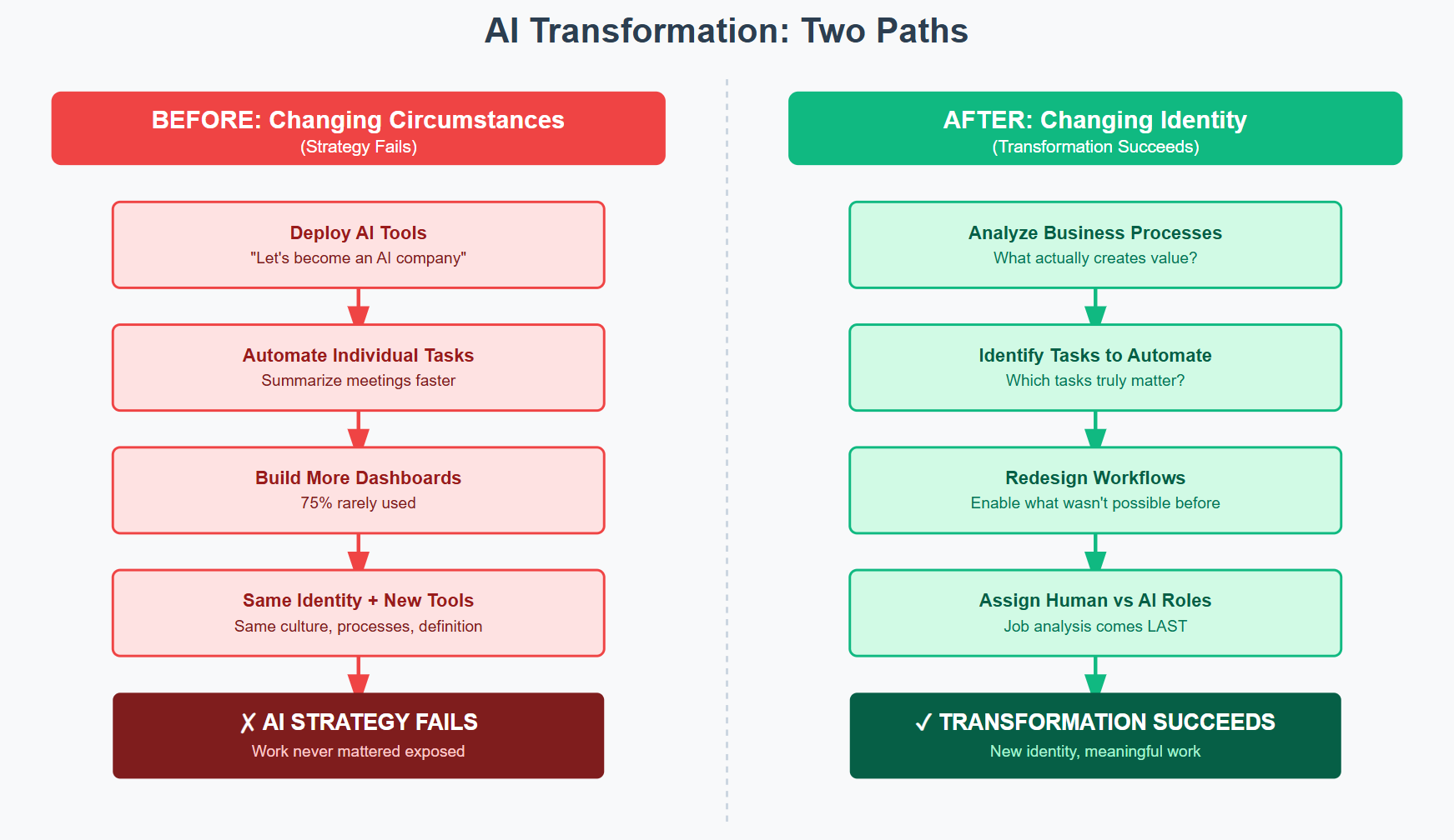 Companies automate individual tasks hoping it adds up to transformation. It doesn't. Transformation isn't doing the same things faster. It's becoming something different.