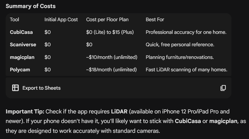 Since I was visiting Davenport Florida, just 1/2 hour from Disney Orlando, with the intent to find a home where we would ultimately retire, I asked Gemini to recommend to me iOS apps that can create a floor plan easily.