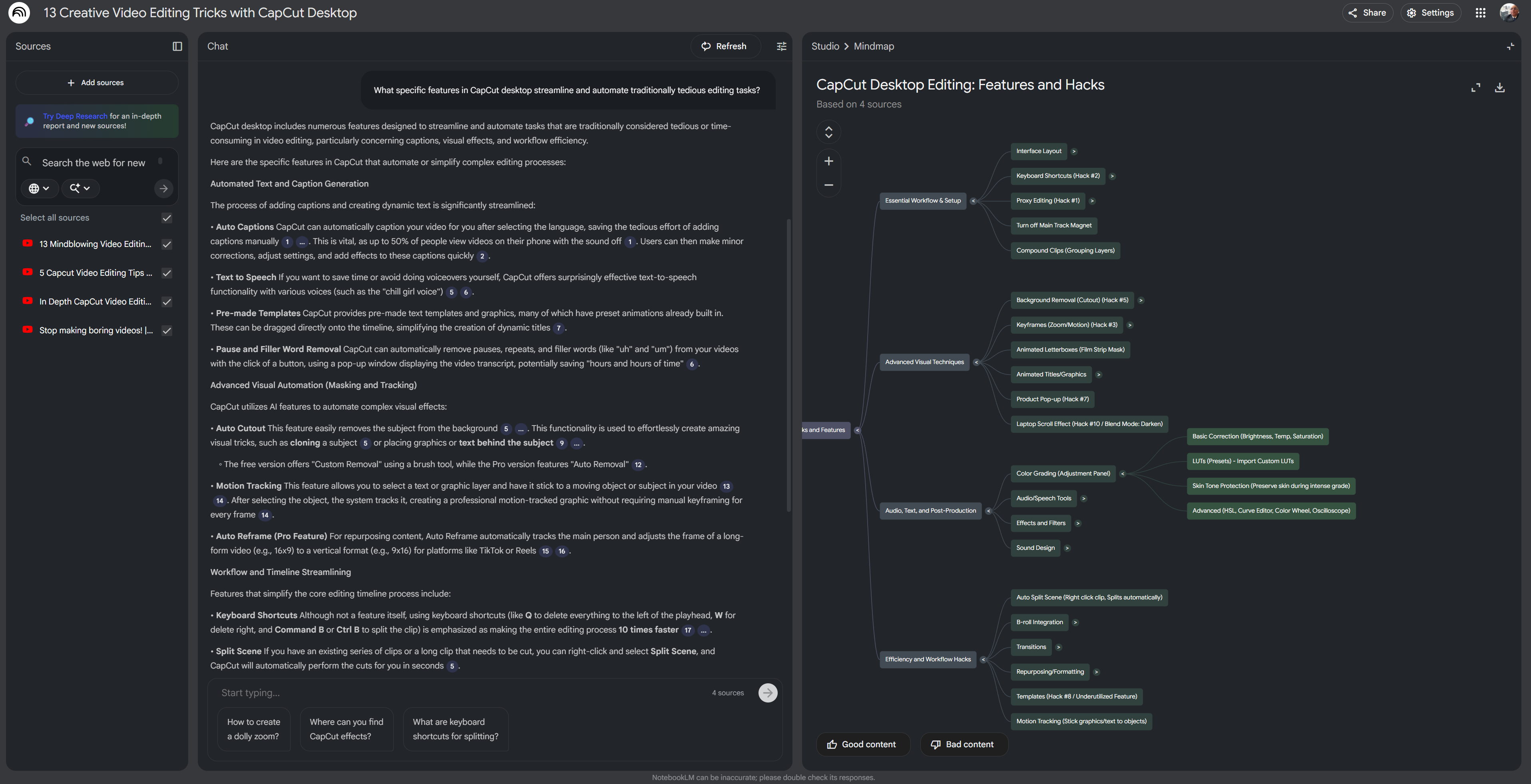 NotebookLM bridges that gap. You ask questions, and it answers with specifics from your sources. You explore tangents, which connect dots across documents. You need a timeline of events or a briefing document; it generates one instantly.