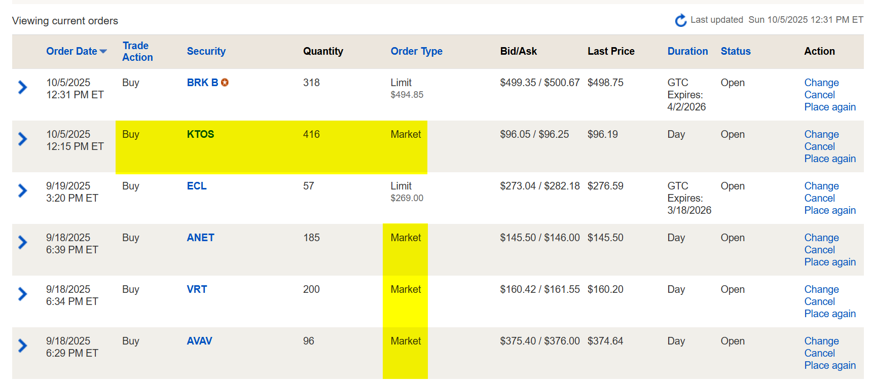 So I did something different than what I've ever done in the past. I changed several of my limit orders to market orders. When the markets open Monday, those stocks I'd been waiting to bargain-hunt will automatically trigger at whatever the market price is.