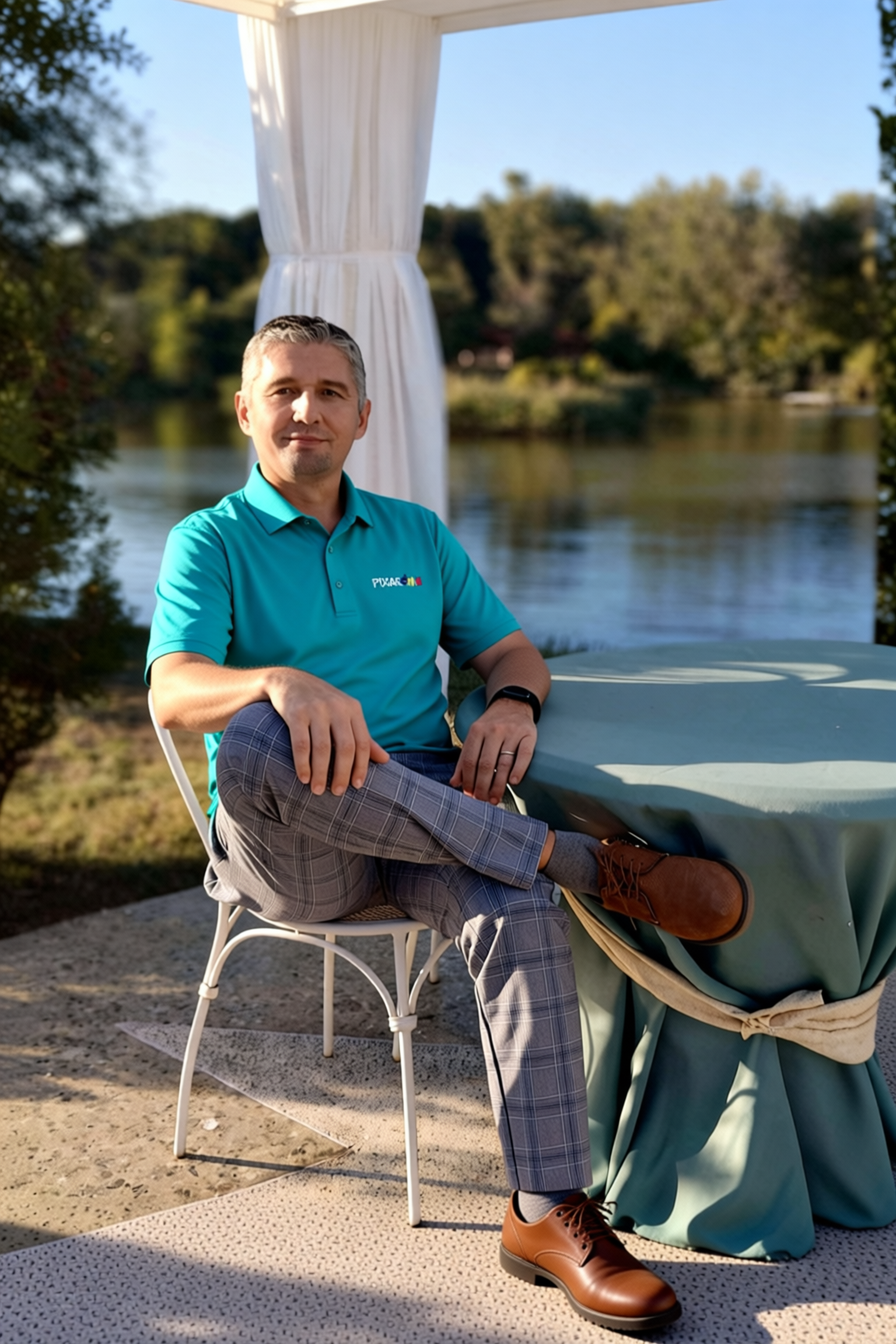 I designed a logo spelling Pixar + OMA, styled in Romanian flag colors, and even had it embroidered on a $35 Amazon T-shirt.