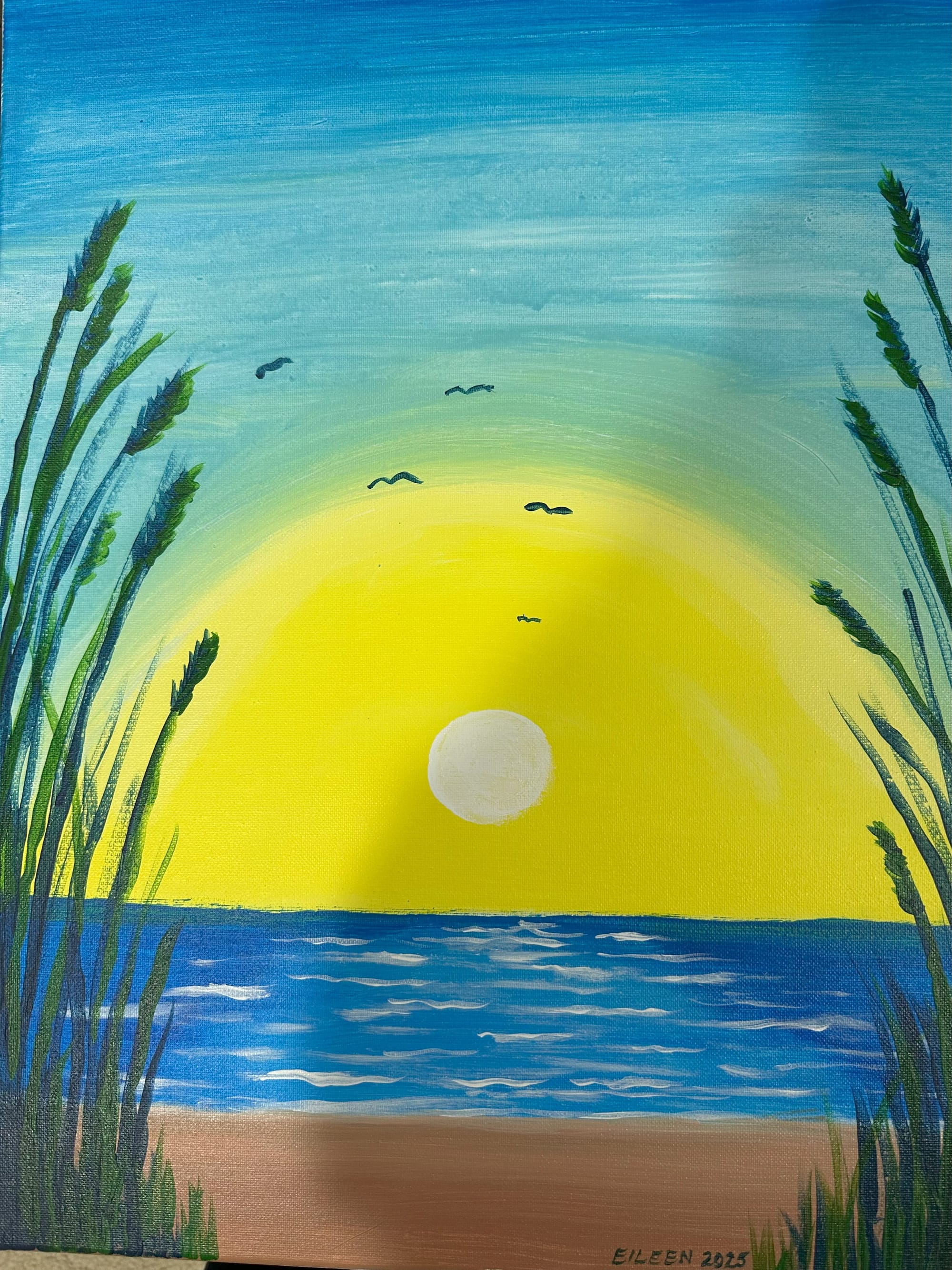 At the end of July 2025, I actually got to try my hand at physical painting instead of AI-generated art. This was at a two-hour paint-n-sip event held at our Church, and about 70 individuals participated. It was a potluck event, and members donated desserts, soft drinks, and hot beverages.