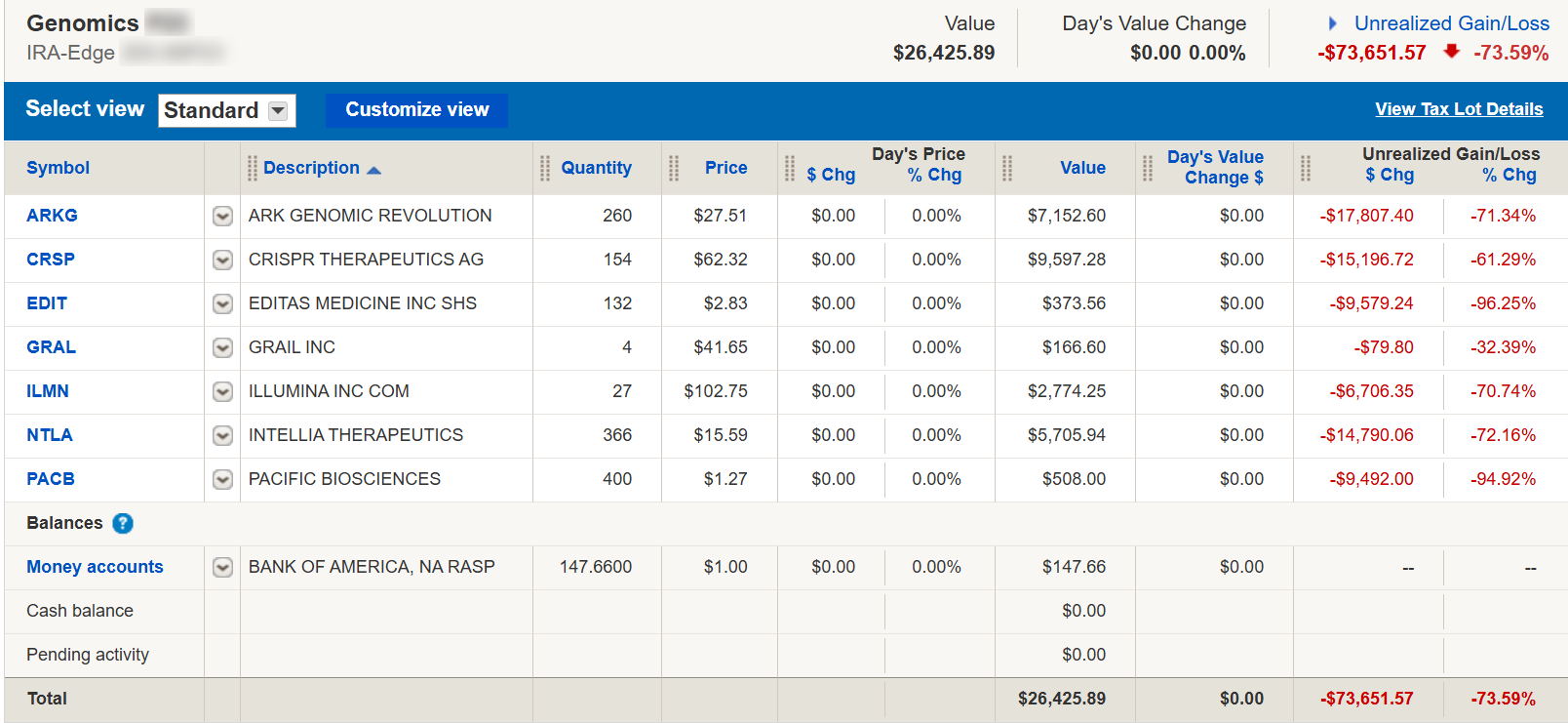 Of course, I've bet on sectors that have not performed well. I'm not selling these at a loss, just in case even one of these stocks bounces back (perhaps due to AI advances).