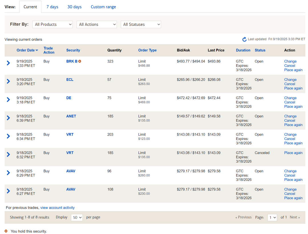 Conservative discipline? I rationalize yes, because I still continue to place new buy orders based on the same concept of "Limit" orders (buying the dip) leaving some margin of safety.
