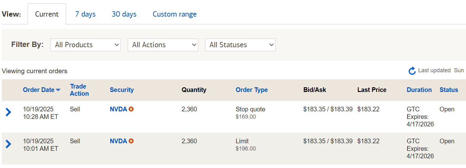 I've placed orders to sell half my NVDA position when it moves ~8% in either direction.