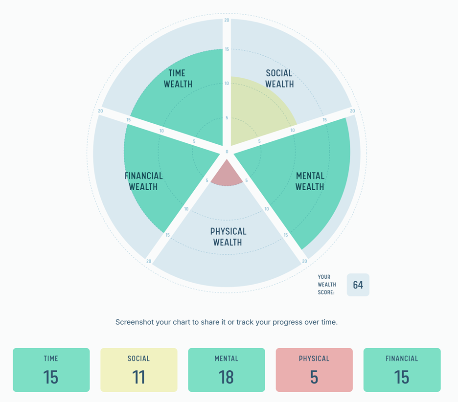 - Financial Wealth is having enough. Not billionaire-enough. Just enough to stop worrying, invest for the future, and use money as a tool to build the other four types of wealth.