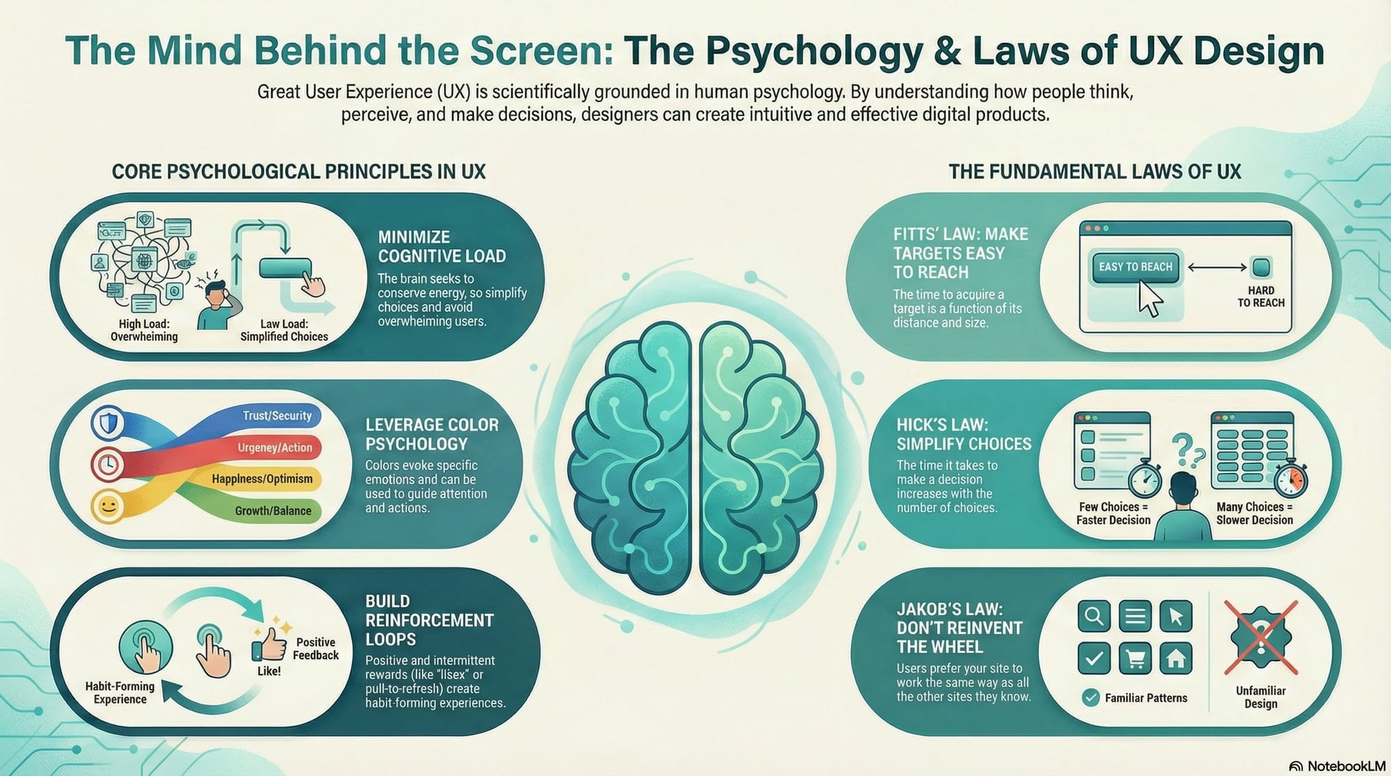 - Hick’s Law: The more choices you have, the longer it takes to decide. This is why Netflix groups shows into categories like "Trending Now"—it’s trying to save you from "choice paralysis".